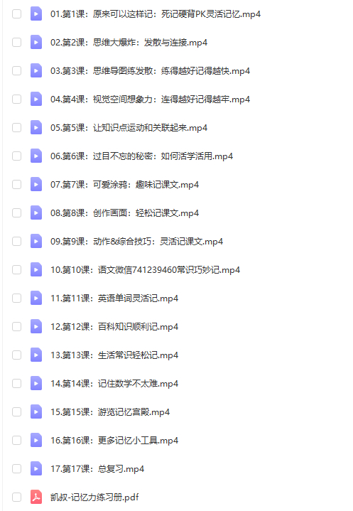 壹圆玖玖资源 » 17节儿童练出记忆力【3.86GB】