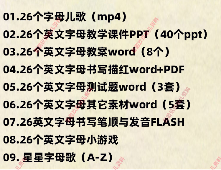 壹圆玖玖资源 » 儿童26个英文字母认知学习PPT/PDF/WORD/9套装