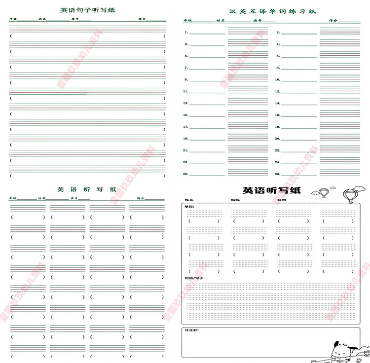 壹圆玖玖资源 » 英文四线三格打印纸电子版信纸花纹带图案A4英语卡通书写纸A4彩色