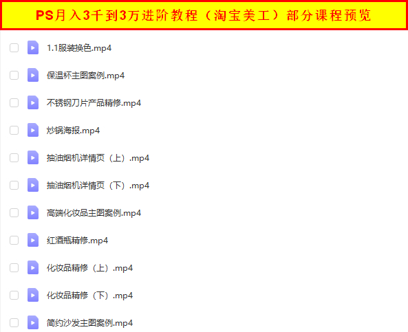 壹圆玖玖资源 » PS月入3千到3万进阶教程(初级,中级,高级,案例,淘宝美工)