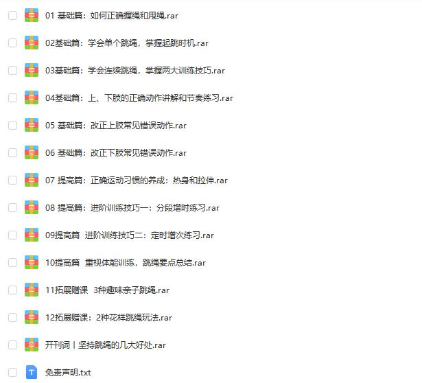 壹圆玖玖资源 » 跳绳技巧视频教程儿童初学入门教学教案花式花样跳绳零基础课程
