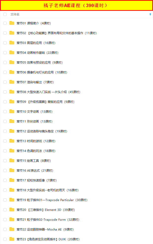 壹圆玖玖资源 » 橘子老师AE课程390课时 练习文件+AE模板
