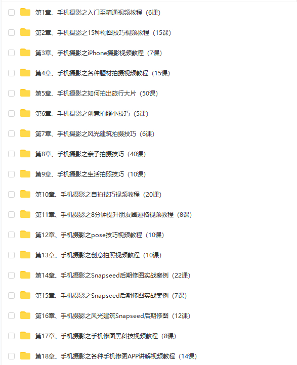 壹圆玖玖资源 » 手机拍照摄影短视频教程入门照相网课教学后期剪辑拍摄技巧修图课